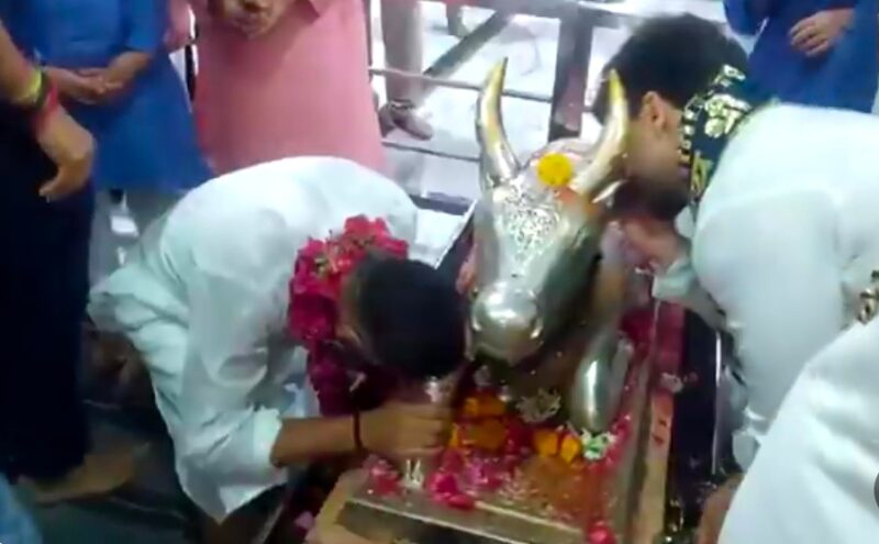 अक्षय कुमार आज तड़के उज्जैन के महाकालेश्वर मंदिर पहुंचे. इस दौरान उनके साथ उनकी सासू मां डिंपल कपाड़िया और एक्टर टाइगर श्रॉफ भी नजर आए. मंदिर पहुंचने के बाद सभी स्टार्स ने हाथ में जल लेकर पंडितजी के साथ मंत्रोंच्चारण किया. मंदिर में माथा टेका. नंदी भगवान के भी दर्शन किए. सभी ने एक एक करके नंदी बैल के कान में अपनी मन्नत बोलीं.