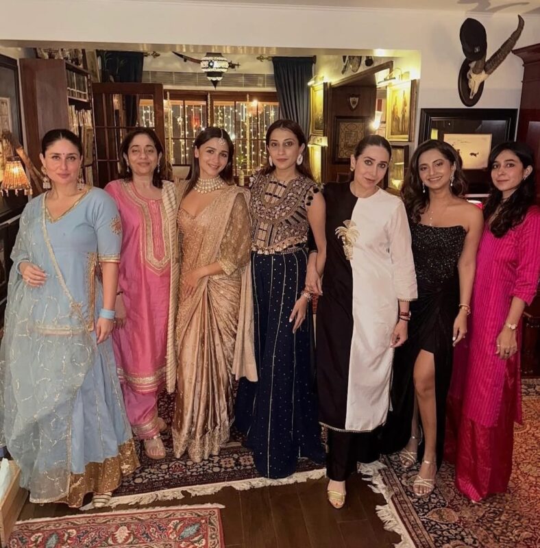 देशभर में धूमधाम से दिवाली मनाई जा रही है. बॉलीवुड में भी दिवाली की धूम है. हर साल की तरह इस साल भी कपूर फैमिली ने एक साथ दिवाली सेलिब्रेट की. इस मौके पर पूरा कपूर खानदान (Kapoor Family इकट्ठा हुआ. आलिया भट्ट भी ससुराल वालों के साथ दिवाली सेलिब्रेशन का हिस्सा बनीं. इस दौरान उन्होंने ससुराल वालों के साथ काफी सारे पोज़ भी दिए.