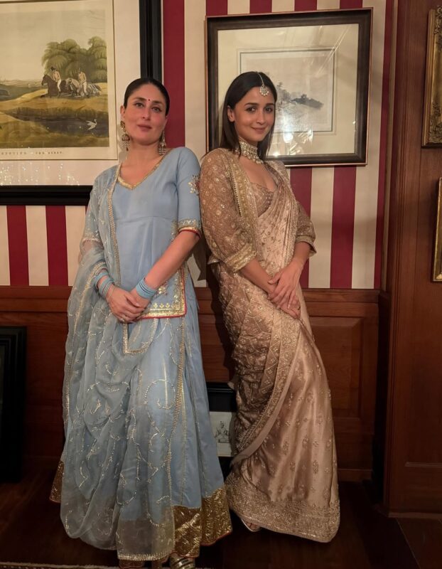 आलिया भट्ट ने सोशल मीडिया पर दिवाली पार्टी की ढेर सारी तस्वीरें शेयर की हैं. इस मौके पर उन्होंने गोल्डन साड़ी पहनी थी इसके साथ मैचिंग जैकेट में वो पटाखा से कम नहीं लग रही थीं. इस मौके पर उन्होंने ननद करीना कपूर (Kareena Kapoor) के साथ भी खूब सारी तस्वीरें क्लिक कराईं. दोनों इन तस्वीरों में इतनी खूबसूरत लग रही हैं कि लोगों की नजरें उन पर से हट ही नहीं रही हैं. फैंस अब उन्हें पटाखा, बम फुलझड़ी का टैग देकर उन पर प्यार लुटा रहे हैं.