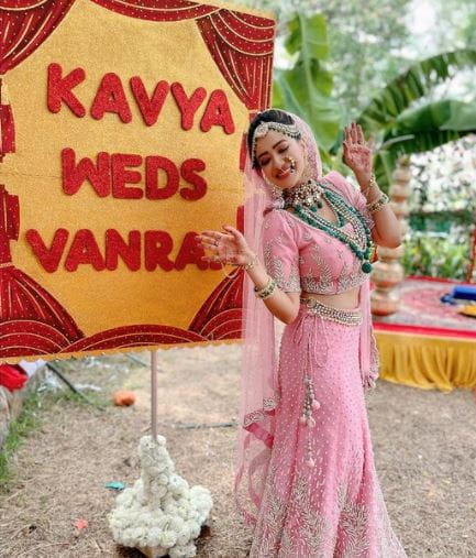 'अनुपमा' सीरियल की काव्या यानी मदालसा शर्मा ने एक तस्वीर अपनी शादी के मंडप के पास से शेयर की है, जिसमें दुल्हन बनी मदालसा एक बोर्ड के पास खड़ी होकर कैमरे के लिए पोज़ कर रही हैं, जिस पर काव्या वेड्स वनराज लिखा हुआ है. इस तस्वीर को देखकर फैन्स यह जानने को बेताब हो गए हैं कि क्या सीरियल में वाकई काव्या और वनराज की शादी होती है या फिर शादी के दौरान इसमें कोई नया ट्विस्ट आने वाला है.