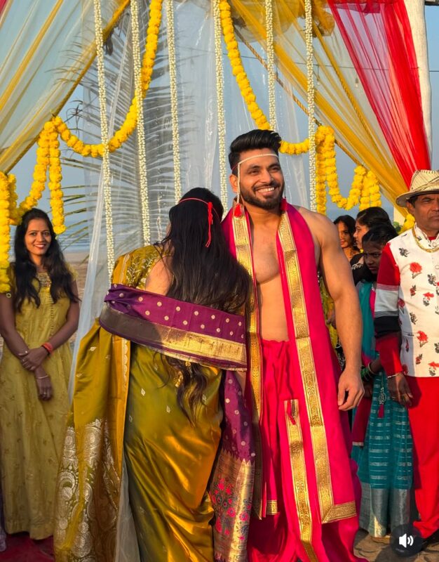 शिव ठाकर ने अपने इंस्टाग्राम अकाउंट पर शादी की एक फोटो शेयर की है. इस फोटो में शिव पारंपरिक तरीके से दूल्हे के लिबास में नजर आ रहे हैं. फोटो में दुल्हन बनी मिस्त्री गर्ल का फेस नजर नहीं आ रहा है. इस फोटो को देखकर अंदाजा लगा सकते हैं कि शिव ने अपनी दुल्हनिया का चेहरा दुनिया के सामने रिवील नहीं किया है. फोटो के बैकग्राउंड में रिश्तेदार और शादी की वेन्यु के डेकोरेशन साफ नजर आ रहा है.