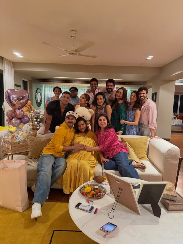 फराह ने गोद भराई की एक ग्रुप फ़ोटो भी शेयर की है, जिसमें हुमा कुरैशी, सोनाक्षी सिन्हा, ज़हीर इकबाल, साकिब सलीम और अन्य लोग दिख रहे हैं. फराह खान ने अब बेबी के आने के बाद बेबी शॉवर की ये तस्वीरें शेयर की हैं, जिस पर फैंस खूब सारा प्यार लुटा रहे हैं.