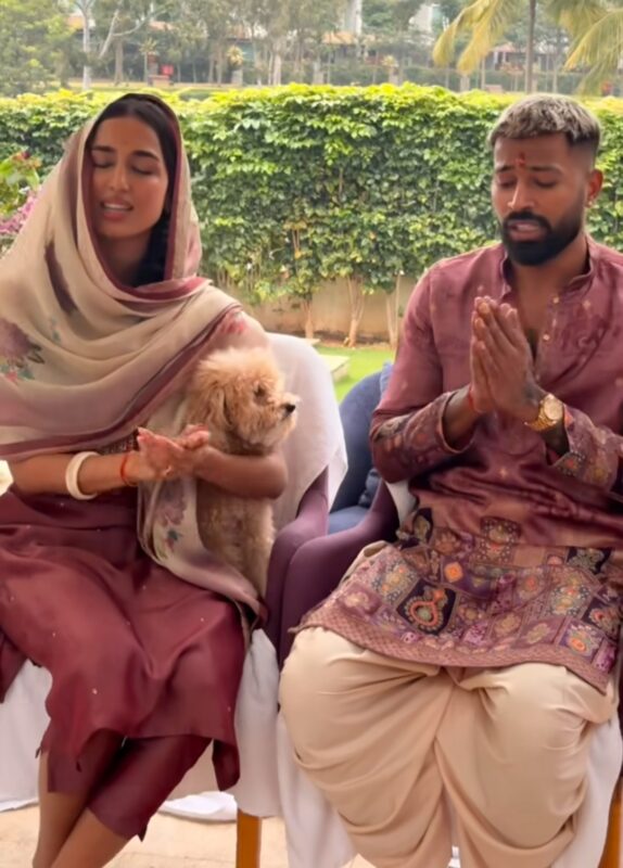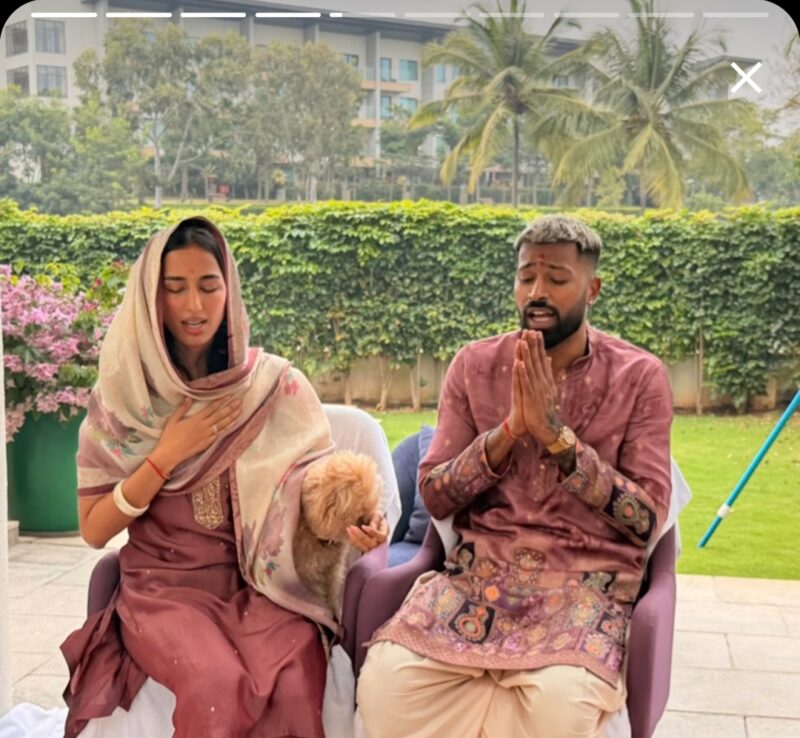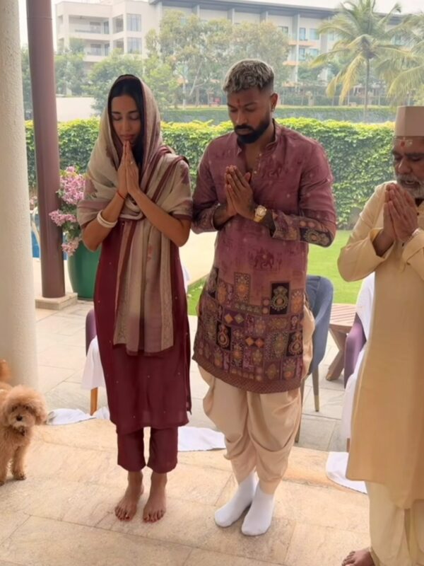 पूजा के दौरान पंडित जी द्वारा मंत्रोच्चार, हवन और सभी पारंपरिक विधियां पूरी की गईं. हार्दिक और उनकी गर्लफ्रेंड आंखें मूंदकर पूजा में लीन दिखाई दिए.