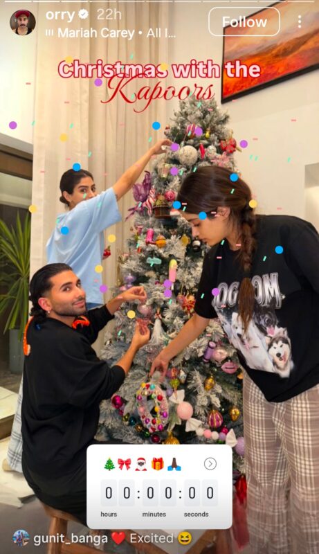 क्रिसमस ट्री डेकोरेशन के इन पलों को ओरी ने अपनी इंस्टा स्टोरी में भी पोस्ट किया है, साथ में एक वीडियो भी है.
