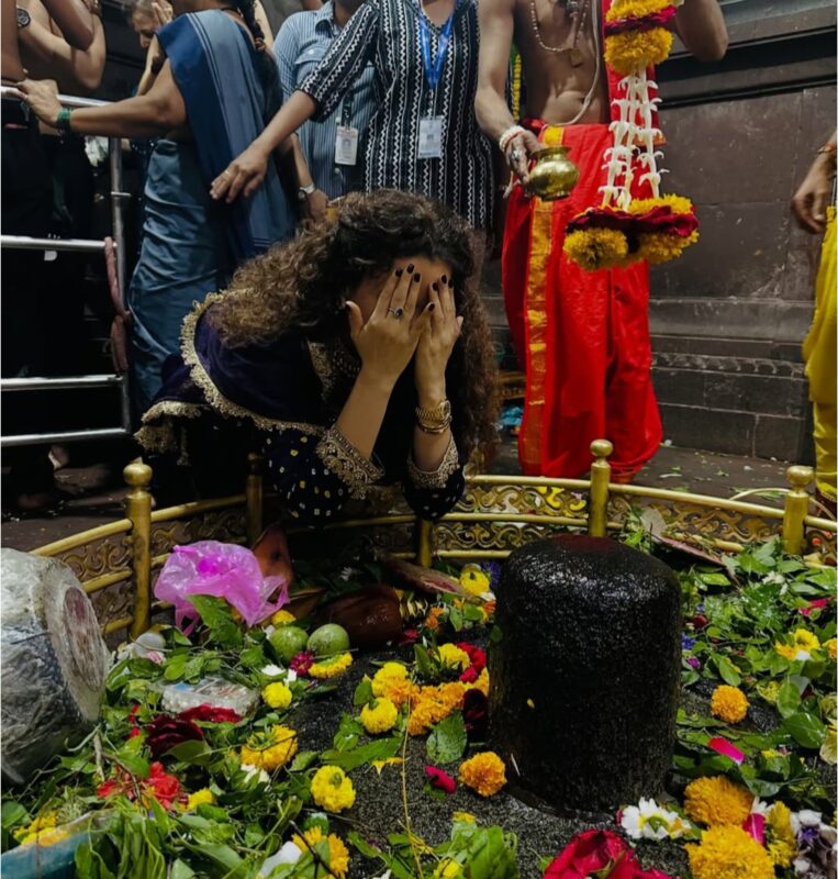 इन तस्वीरों को शेयर करते हुए कंगना रनौत ने लिखा, "आज घृष्‍णेश्‍वर महादेव ज्योतिर्लिंग के दर्शन किए, कई ऐसे ज्योतिर्लिंग हैं जहां 2-4 बार भी जा चुकी हूं लेकिन महाराष्ट्र जो मेरा घर रहा है, वहीं स्थापित बाबा घृष्‍णेश्‍वर के दर्शन करने का सौभाग्य आज मिला, इसमें कोई दो राय नहीं कि आप तभी दर्शन के लिए जा पाते हैं जब आपको महादेव बुलाएं, हर हर महादेव."