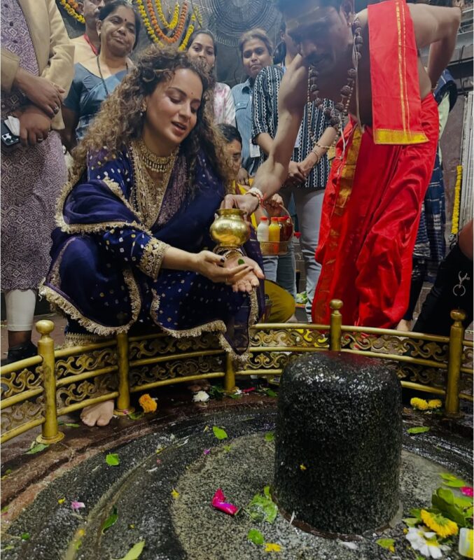 ओंकारेश्वर में रुद्राभिषेक के बाद कंगना रनौत पहुंचीं घृष्‍णेश्‍वर महादेव ज्योतिर्लिंग, दर्शन के बाद किया महादेव का अभिषेक, बोलीं- दर्शन तभी मिलते हैं जब आपको महादेव बुलाएं (Kangana Ranaut visits Grishneshwar Jyotirlinga temple, Offers prayers, Performs Abhishek, seeks blessings of Mahadev)