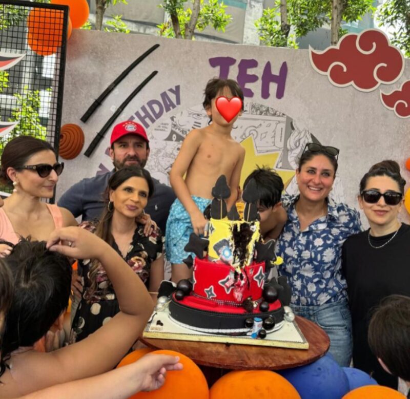 जेह ने बर्थडे पर नारुतो-थीम वाली कुकीज से सजा बड़ा 3 टियर वाला केक कट किया. इस मौके पर जेह और तैमूर बिना शर्ट के दिखे. मासी करिश्मा कपूर, बुआ सोहा व सबा और नेहा धूपिया भी जेह को चीयर करती दिखी. तस्वीरें देखकर अंदाज़ा लगाया जा सकता है कि सभी ने खूब एन्जॉय किया.