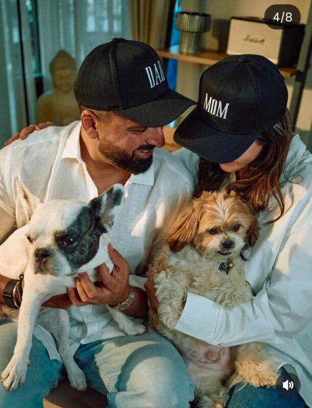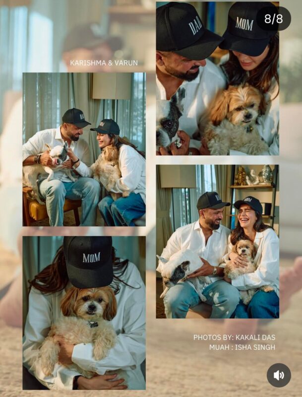 मैटरनिटी फोटोशूट की इन तस्वीरों में करिश्मा और वरुण मॉम एंड डैड नाम वाली एक जैसी कैप पहने हुए नजर आ रहे हैं. दूसरी फोटो में एक्ट्रेस अपने हाथों में छोटे छोटे जूते पकड़े हुए नजर आ रही हैं. इसके अलावा इन तस्वीरों में उनके फरी फ्रेंड्स भी नजर आ रहे हैं