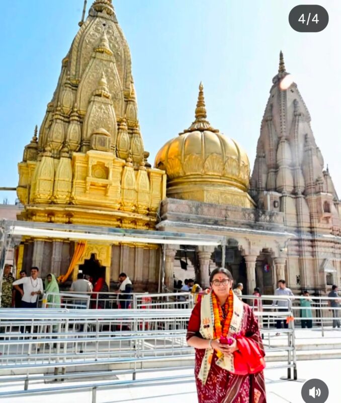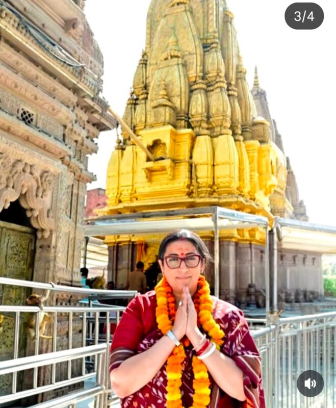 स्मृति ईरानी ने अपने इंस्टाग्राम अकाउंट पर अपने काशी की स्पिरिचुअल विजिट की लेटेस्ट फोटोज शेयर की हैं. इन तस्वीरों में एक्ट्रेस बाबा विश्वनाथ के शिवलिंग के सामने घुटनों के बल बैठकर से प्रार्थना करते हुए नजर आ रही हैं. दूसरी फोटो में स्मृति मंदिर के प्रांगण में हाथ जोड़ कर खड़ी हैं. बैक राउंड में मंदिर नजर आ रहा है. तीसरी फोटो में एक्ट्रेस मंदिर के बाहर खड़ी है.