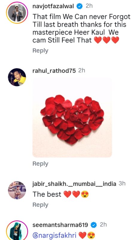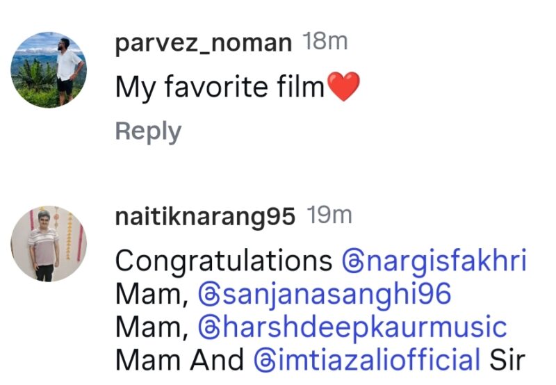 फैंस फाखरी की इस पोस्ट पर जमकर कमेंट्स करने और अपने लव इमोजी के साथ अपना ख़ूब प्यार लुटा रहे हैं. किसी ने बेस्ट फिल्म कहा, तो किसी ने नरगिस की ख़ूबसूरती की तारीफ़ की, कुछ इस तरह...