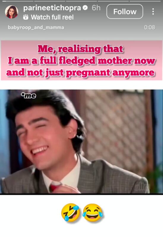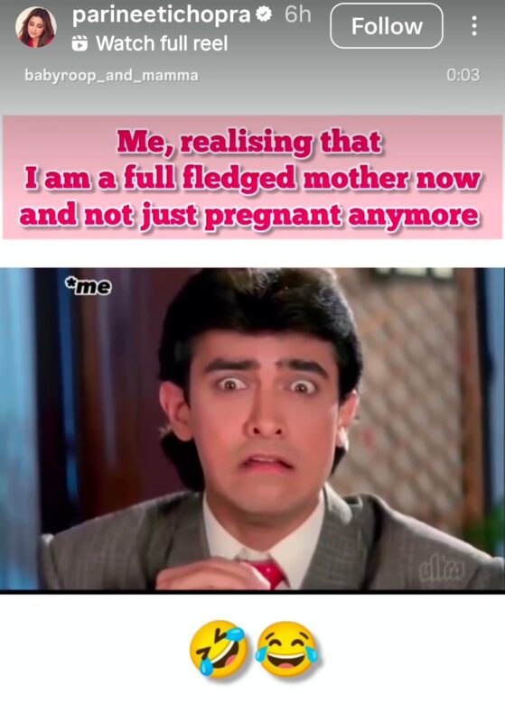 हाल ही में मम्मी बनीं परिणीति चोपड़ा ने अपनी इंस्टाग्राम स्टोरी पर एक मज़ेदार रिएक्शन शेयर किया है. एक्ट्रेस की इस पोस्ट को देखने के बाद फैंस की हंसी ही नहीं रुक रही है.