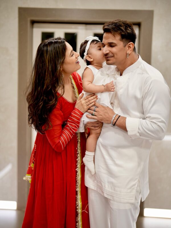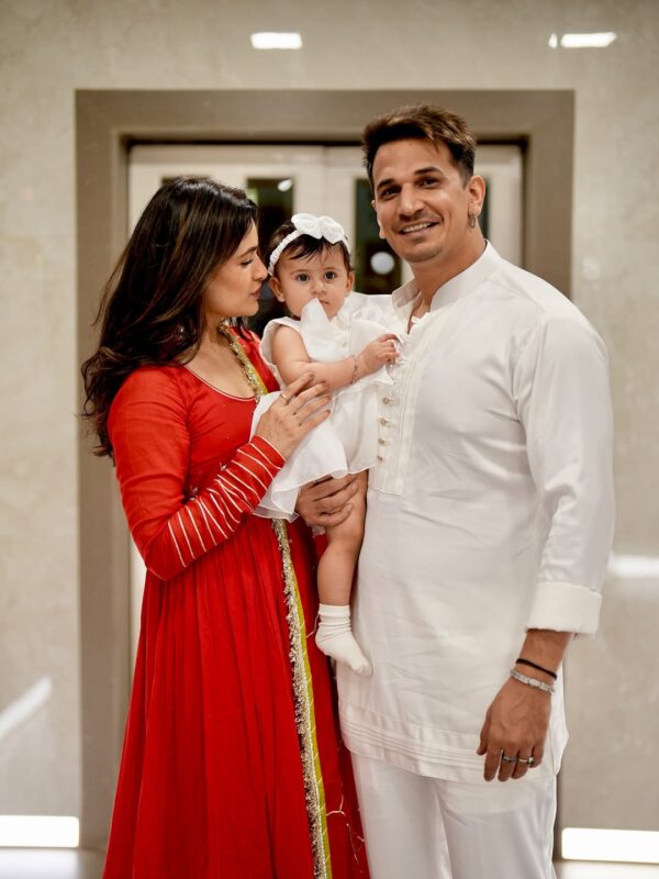 गुरु पूरब के दिन प्रिंस और युविका अपनी प्रिंसेस के साथ गुरुद्वारा मत्था टेकने पहुंचे थे. अब तक तो पब्लिक अपीयरेंस के दौरान इकलीन का फेस मीडिया और फैंस से छिपाते थे, लेकिन इस बार उन्होंने ऐसा नहीं किया और पैप्स के सामने बेटी के साथ खूब सारे पोज़ दिए, जिसकी कई वीडियोज़ और तस्वीरें सोशल मीडिया पर छाई हुई हैं, जिसमें कभी युविका बिटिया को प्रसाद खिलाती नज़र आ रही हैं तो कभी प्रिंस की लिटिल प्रिंसेस पापा को नन्हें हाथों से प्रसाद खिला रही है. रुमाली पहने इकलीन के ये क्यूट मोमेंट्स कैमरे में कैद हो गए हैं और अब सबका दिल जीत रही है.