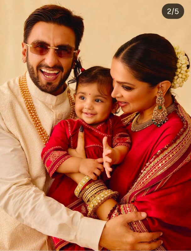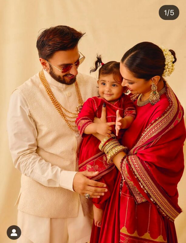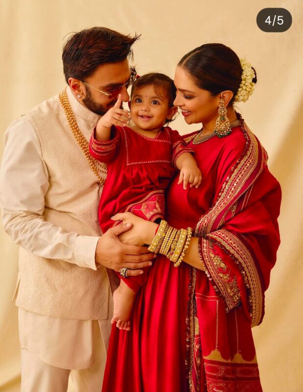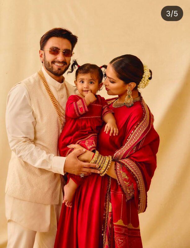 इन खूबसूरत तस्वीरों में रणवीर सिंह और दीपिका पादुकोण अपनी बेटी दुआ को गोद में उठाए हुए हैं, उसे प्यार से निहार रहे हैं. दुआ की मासूम-सी मुस्कान ने फैंस का दिल चुरा लिया है.