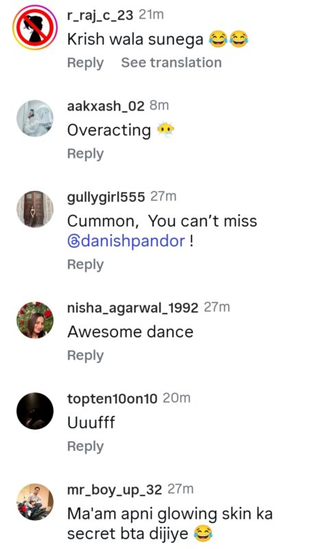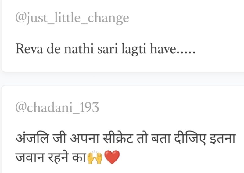 फैंस ने भी अपने अफलातून प्रतिक्रियाओं से सभी का ख़ूब मनोरंजन किया. आज का सबसे बेस्ट रील मैंने देखा... ओल्ड इज़ गोल्ड... अंजलि... अंजलि... आफ़त... तुलु अक्का अरेबिक रैप कर रही... अंजलि कुछ खाया करो, कितनी कमज़ोर हो रही हो आप... ऐजलेस ब्यूटी... आज आपकी बेटी होती तो आप और आपकी बेटी बहनें लगतीं. आपकी फिटनेस लाजवाब है. योगा का इतना कमाल होता है आज देख लिया... नो वन कैन मैच अक्षय खन्ना वाइब...