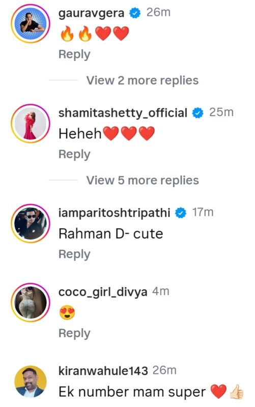 शिल्पा शेट्टी के सराहना भरे इस पोस्ट पर फिल्म से जुड़े कलाकारों ने भी आभार व्यक्त किया. अर्जुन रामपाल ने लव इमोजी के साथ थैंक यू सो मच कहा. गौरव गेरा ने आग और दिल के इमोजी के साथ अपनी अनुभूति ज़ाहिर की. शिल्पा शेट्टी की बहन शमिता शेट्टी ने भी अपने मज़ेदार रिएक्शन दिए.