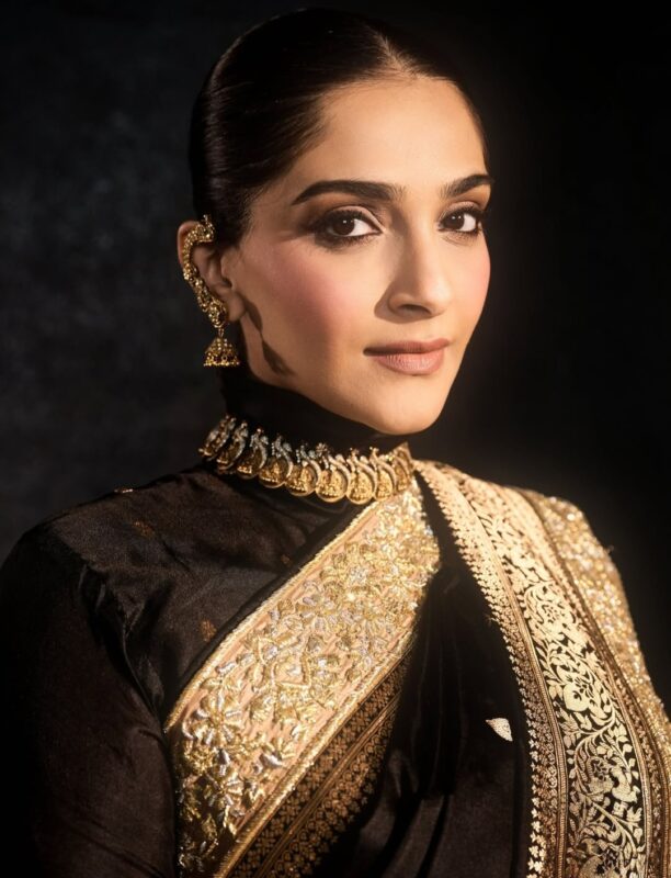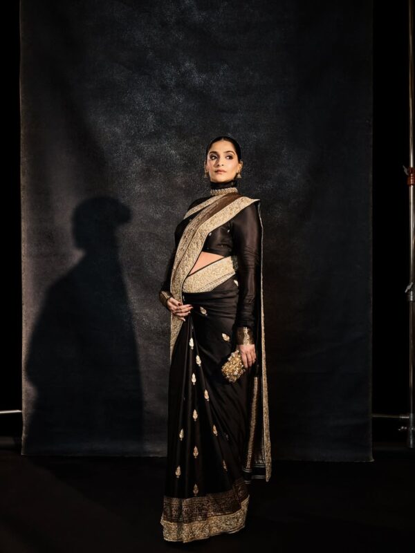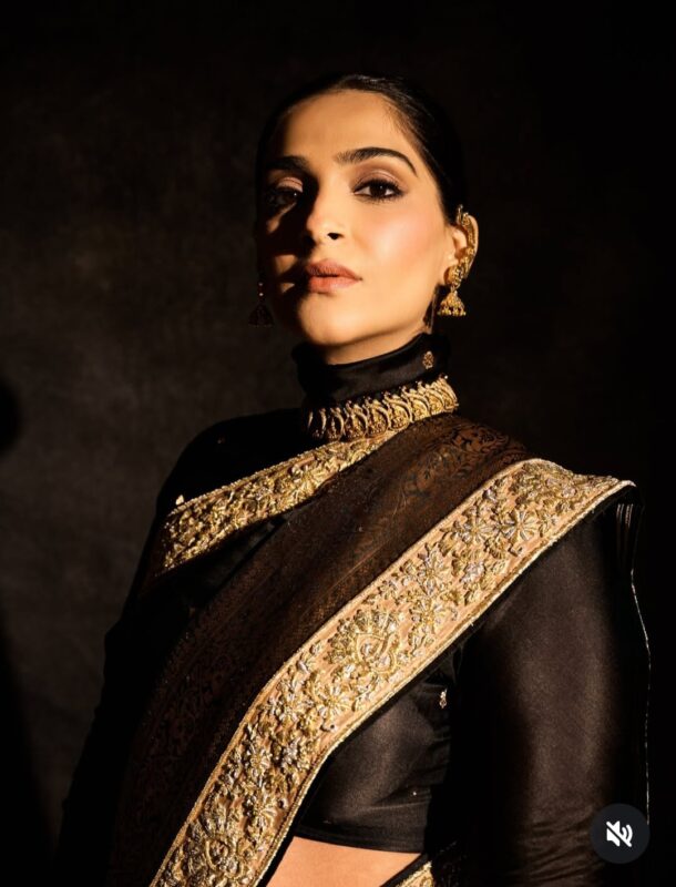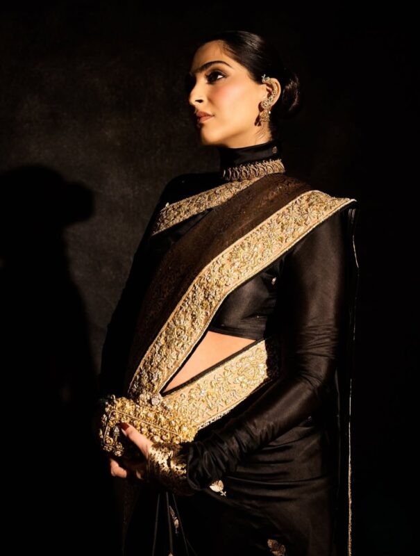 बॉलीवुड के सबसे प्यारे कपल्स में से एक सोनम कपूर (Sonam Kapoor) और उनके पति आनंद आहूजा (Anand Ahuja) के घर जल्द ही दूसरी बार पैरेंट्स बनने जा रहे हैं. सोनम कपूर 40 की उम्र में दोबारा प्रेग्नेंट (Sonam Kapoor pregnancy) हैं. एक्ट्रेस ने जब से प्रेग्नेंसी अनाउंस की है तभी से वो मैटरनिटी फैशन गोल्स सेट कर रही हैं और अपने ग्लैमरस अंदाज़ में बेबी बंप फ्लॉन्ट (Sonam Kapoor flaunts baby bump) करके तारीफें लूट रही हैं. एक बार फिर सोनम ने ब्लैक साड़ी में देसी लुक से सबका दिल जीत रही हैं.