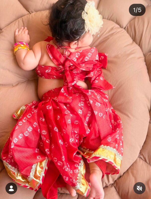 सोशल मीडिया पर एक्टिव सोनारिका भदौरिया ने हाल ही में अपने इंस्टाग्राम अकाउंट पर अपनी बेटी विरिका की फोटोज शेयर की हैं. इन क्यूट फोटोज में छोटी-सी विरिका रेड कलर का घाघरा चोली पहने हुए बहुत क्यूट लग रही हैं. इन cuttest फोटोज को शेयर करते हुए सोनारिका ने कैप्शन में लिखा - हमारी छोटी सी मैया. आप सभी को चैत्र नवरात्रि की अनेक और अनंत शुभकामनाएं.