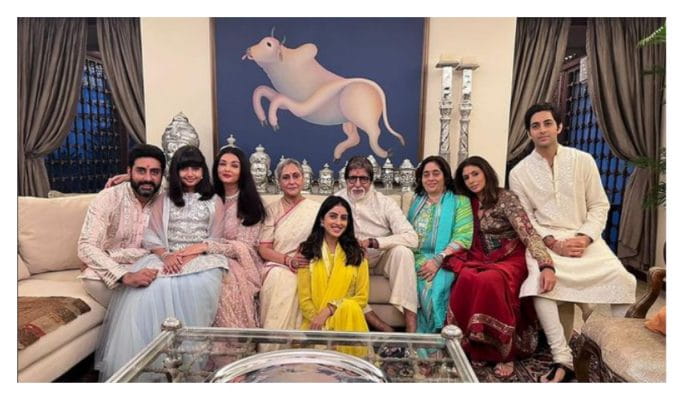 अमिताभ बच्चन (Amitabh Bachchan) ने अपने इस फैमिली फोटो को फैंस को दीवाली विश करने के लिए शेयर किया था. इस तस्वीर में बिग बी के साथ जया बच्चन, अभिषेक बच्चन, ऐश्वर्या राय बच्चन, श्वेता बच्चन, नव्या नवेली नंदा और अगस्त्य नंदा नज़र आ रहे हैं. फोटो में पूरी फैमिली सोफे पर बैठी है और उनके पीछे एक बड़ी सी पेंटिंग लगी हुई है. इस पेंटिंग ने हर किसी का ध्यान अपनी ओर आकर्षित किया है, जिसकी वजह से ये चर्चा का विषय बन गया है.